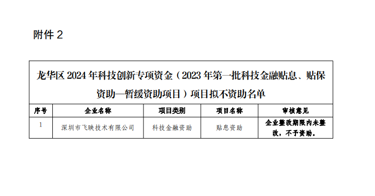 2.龙华区2024年科技创新专项资金(2023年第一批科技金融贴息、贴保资助—暂缓资助项目)项目拟不资助名单